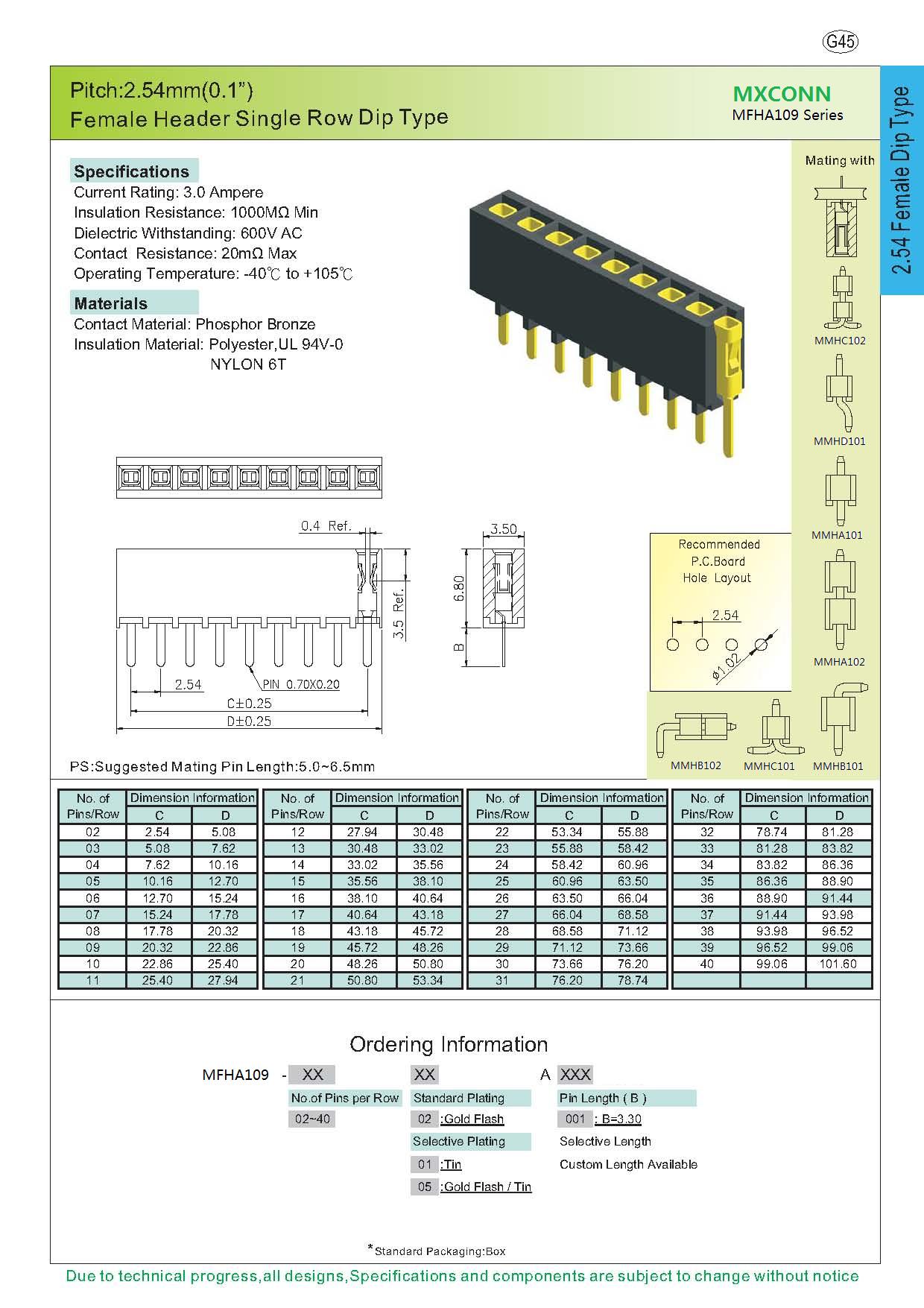 ·Pitch:2.54mm