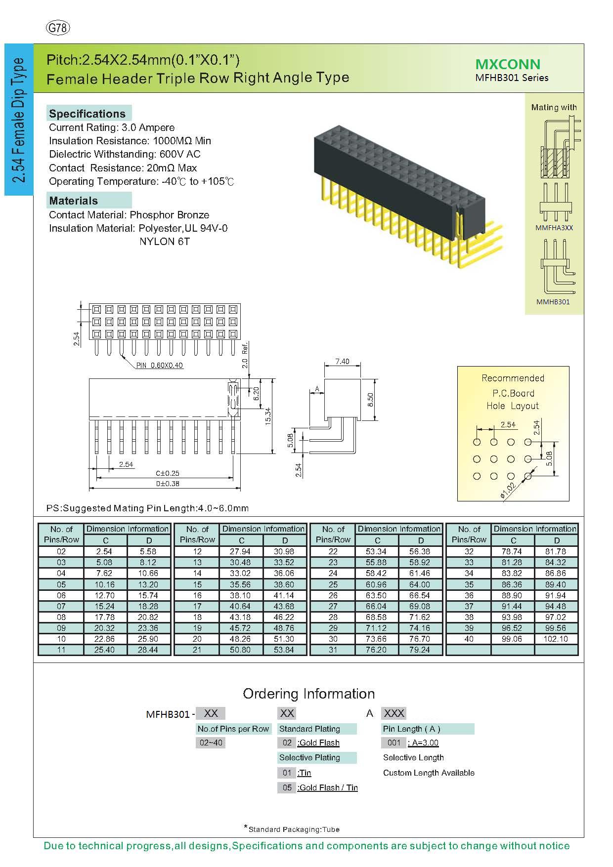 ·Pitch:2.54mm