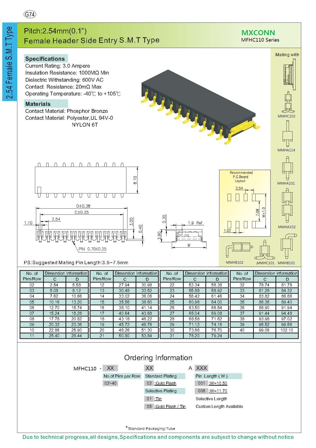 ·Pitch:2.54mm