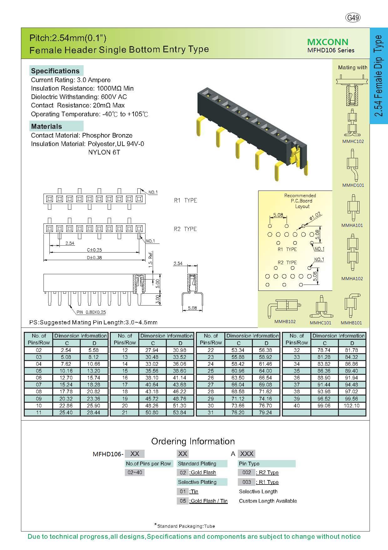 ·Pitch:2.54mm