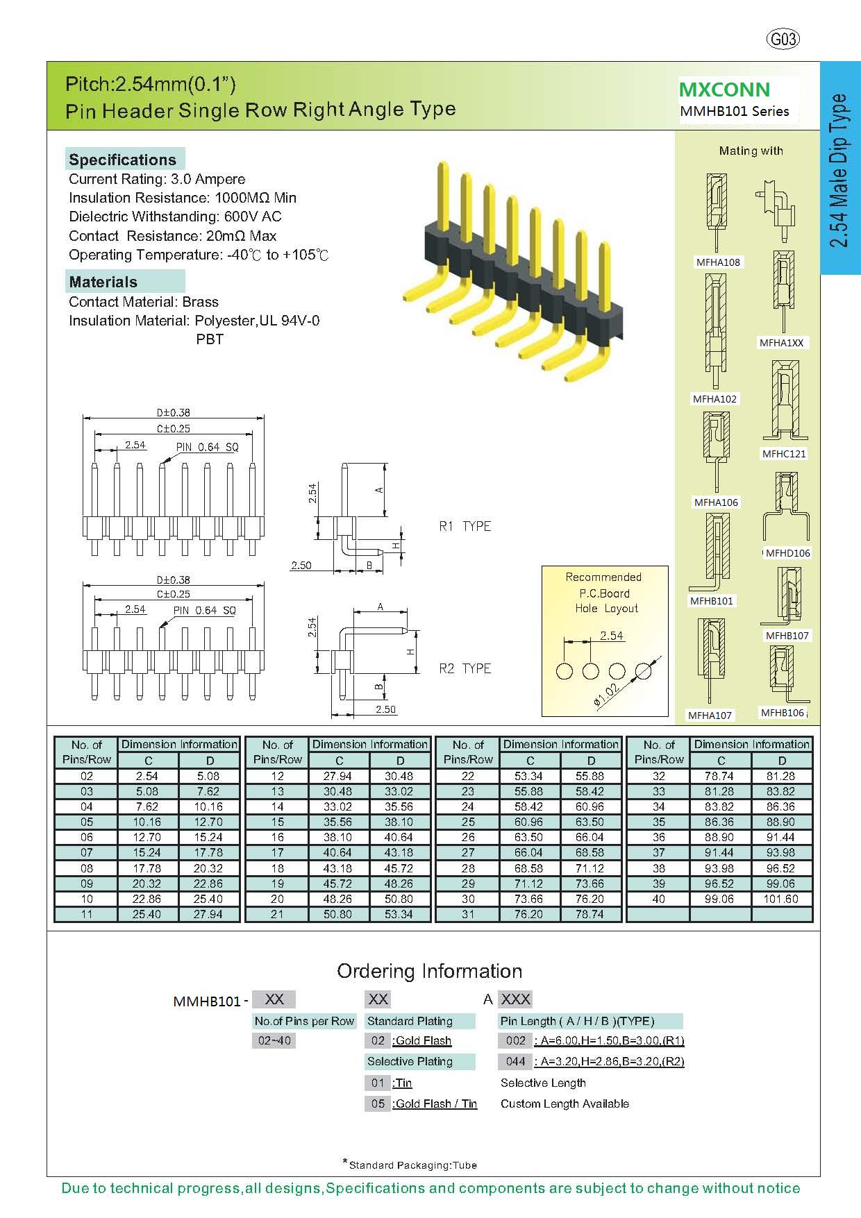 ·Pitch:2.54mm