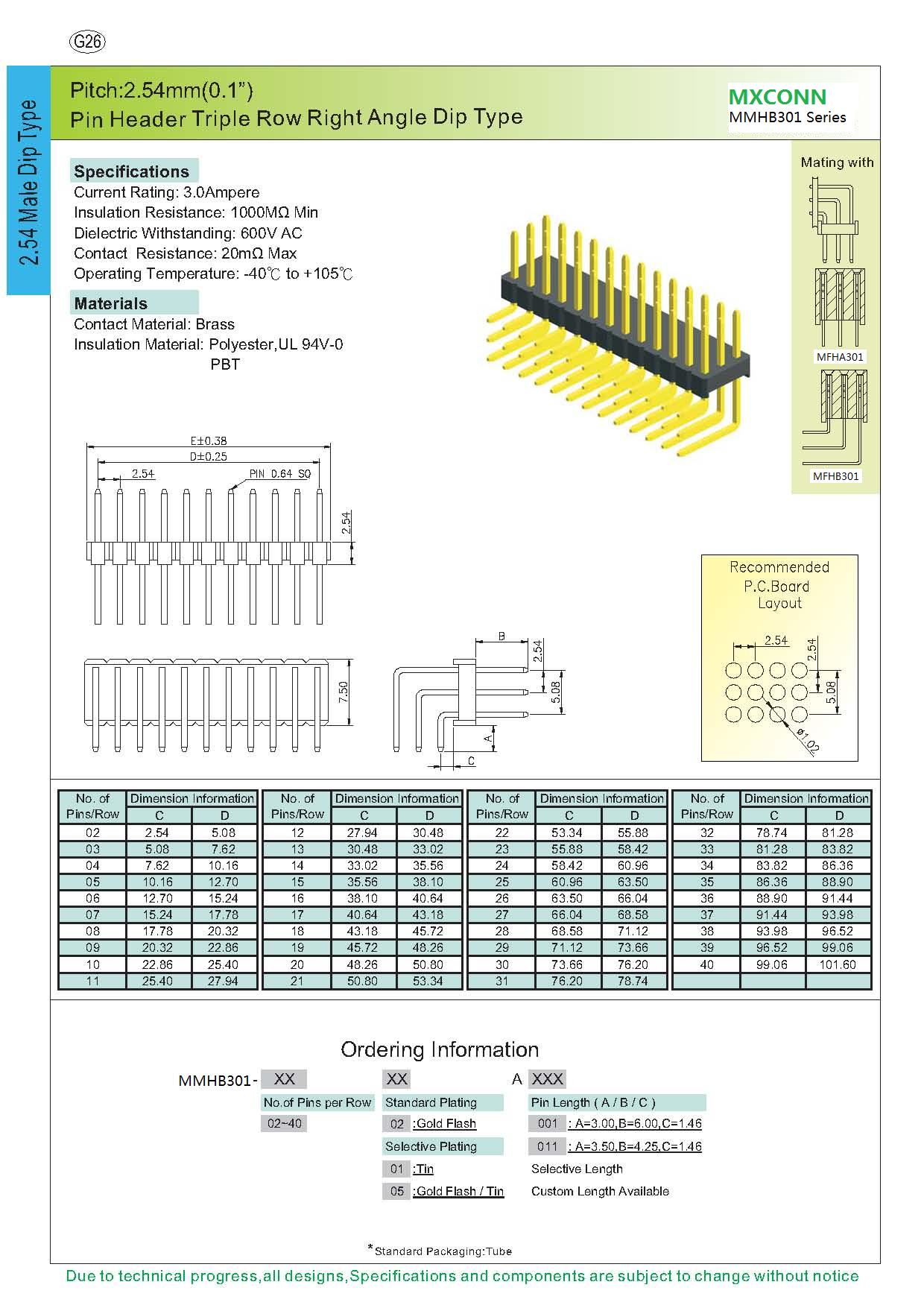 ·Pitch:2.54mm
